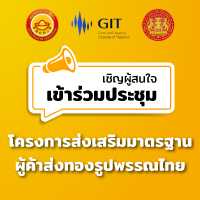 ขอเชิญเข้าร่วมประชุมโครงการส่งเสริมมาตรฐานผู้ค้าส่งทองรูปพรรณไทย