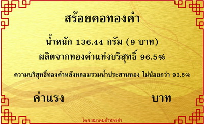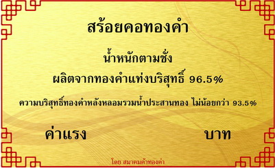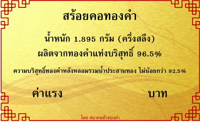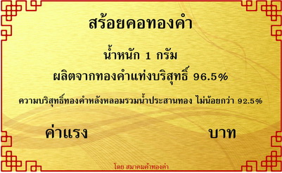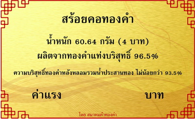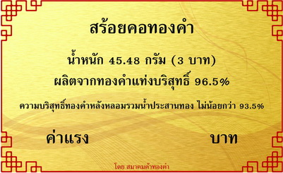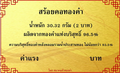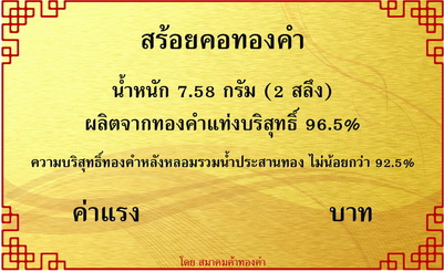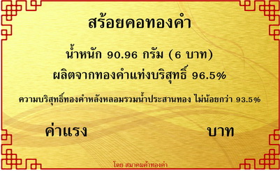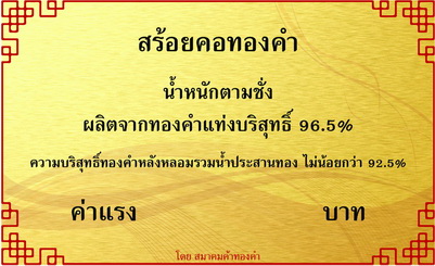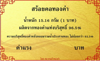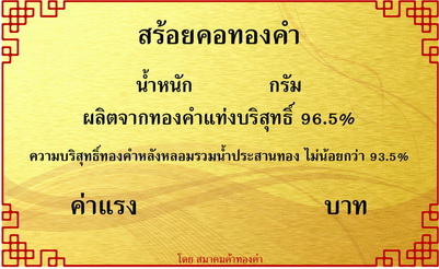ตัวอย่าง ฉลากทองรูปพรรณ (สร้อยคอทองคำ)