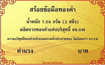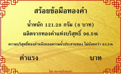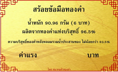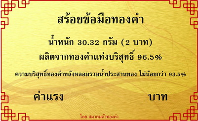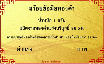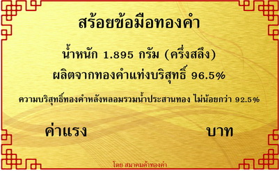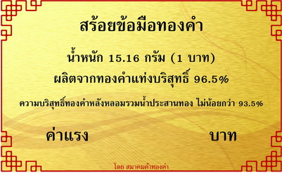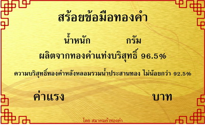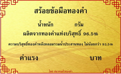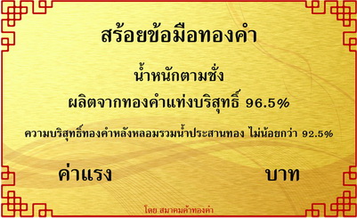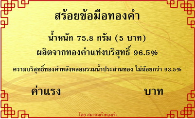ตัวอย่าง ฉลากทองรูปพรรณ (สร้อยข้อมือทองคำ)
