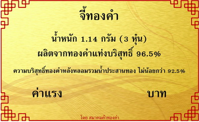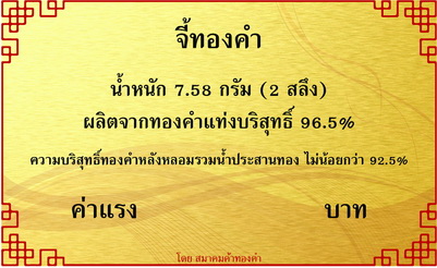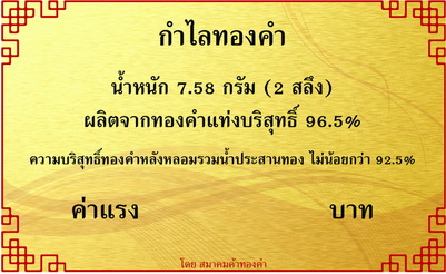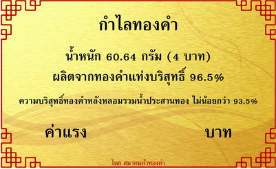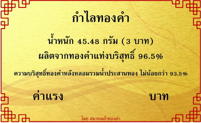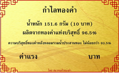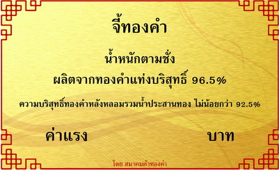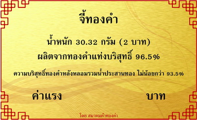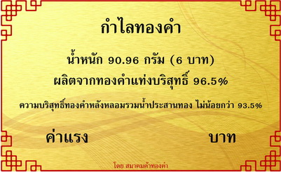 ตัวอย่าง ฉลากทองรูปพรรณ (กรอบพระทองคำ)