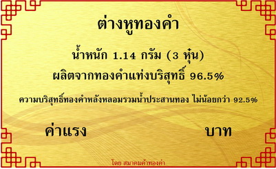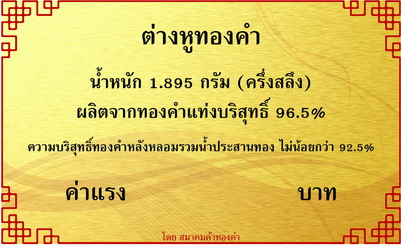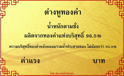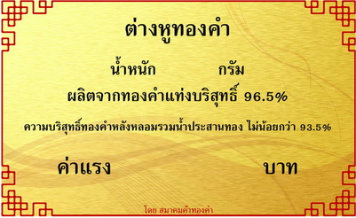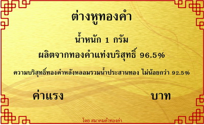 ตัวอย่าง ฉลากทองรูปพรรณ (ต่างหูทองคำ)